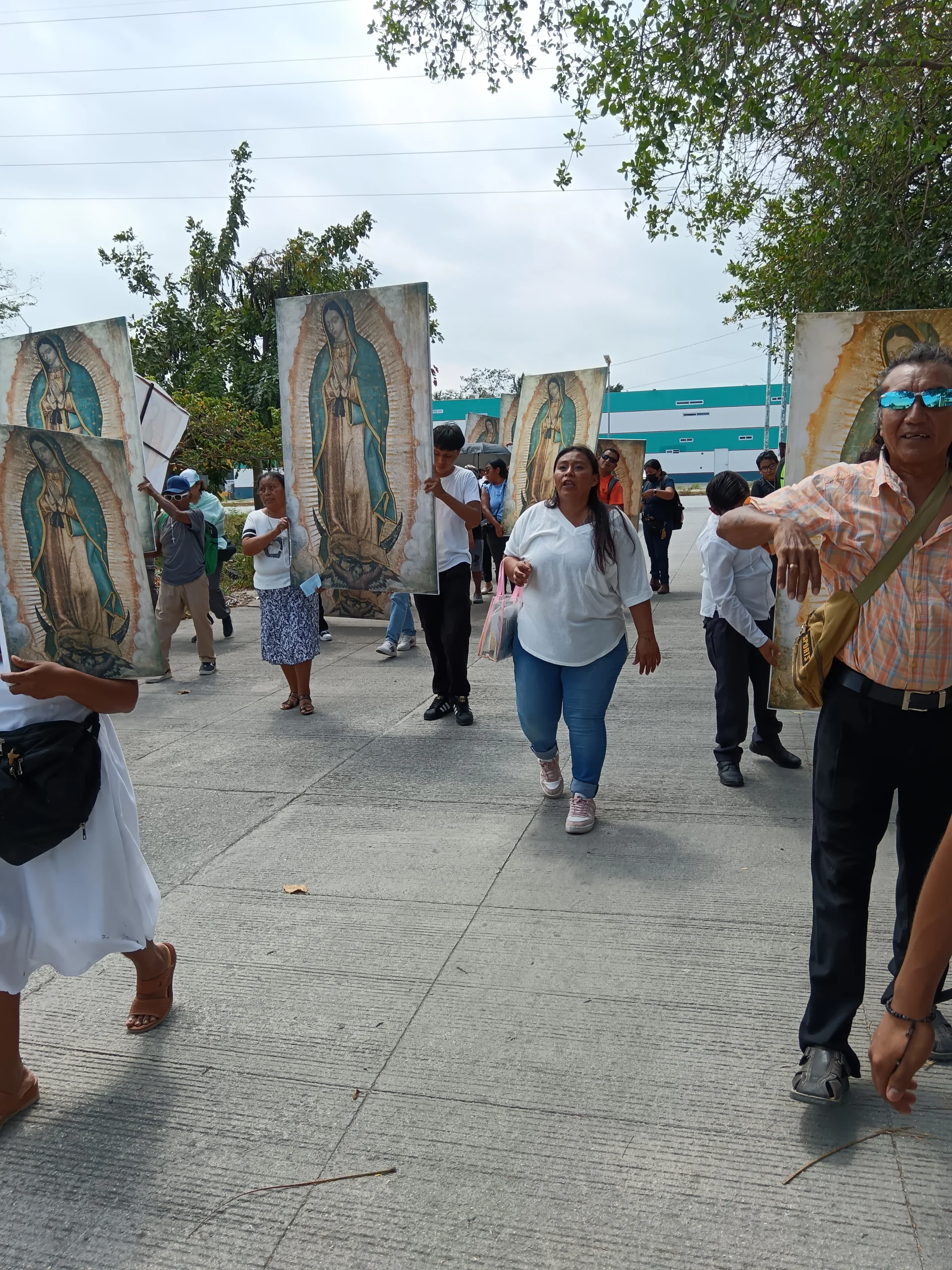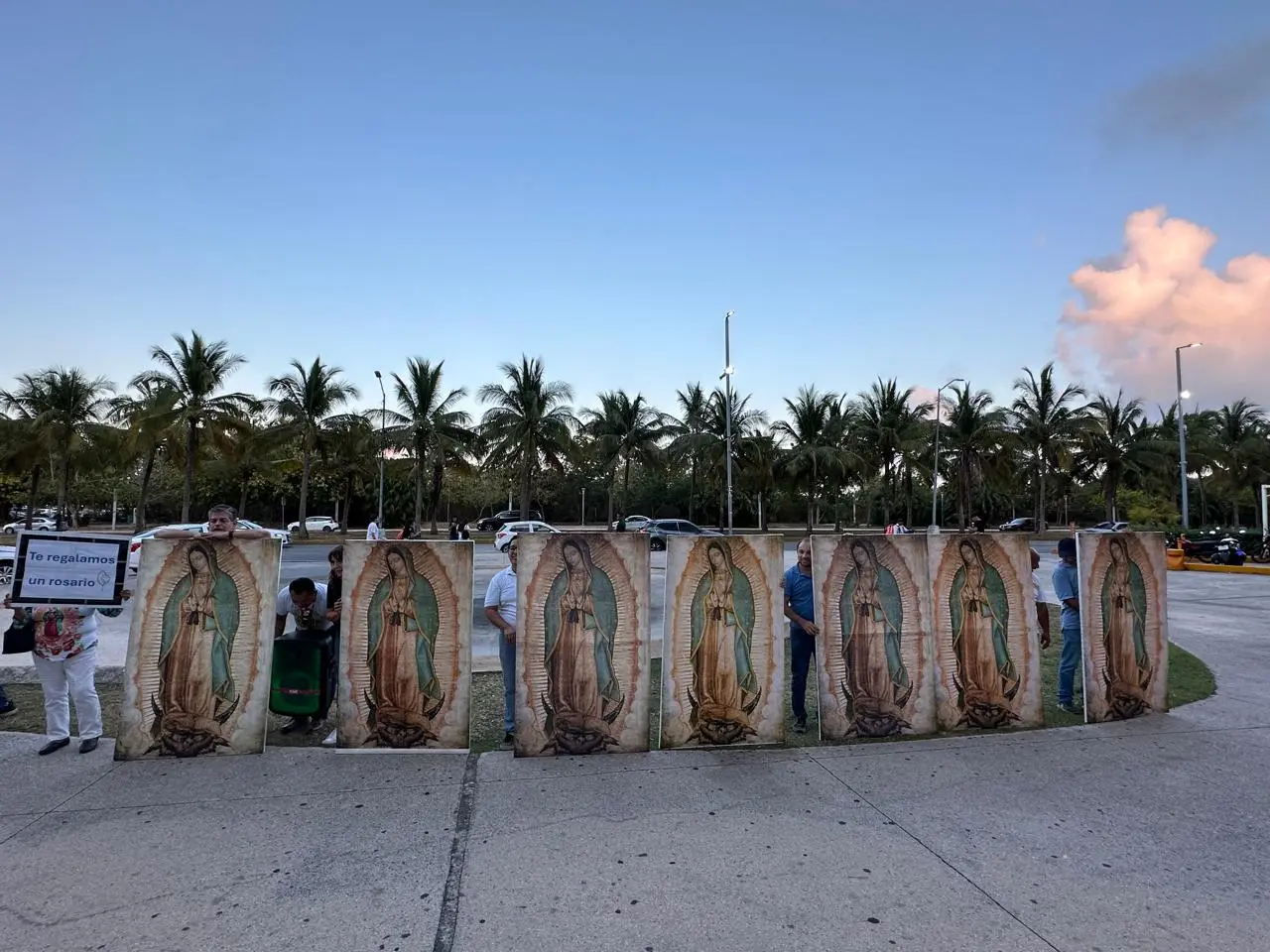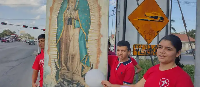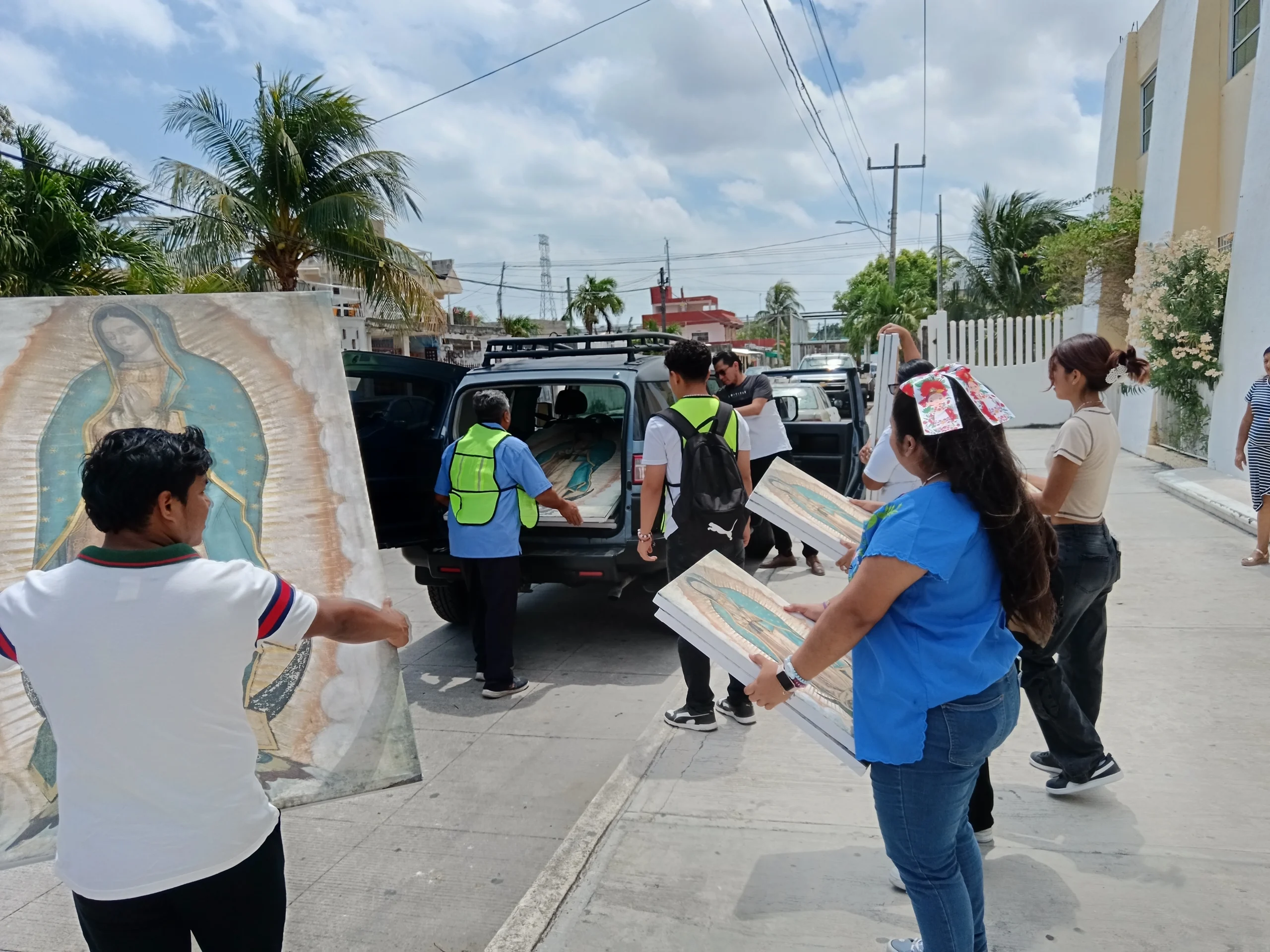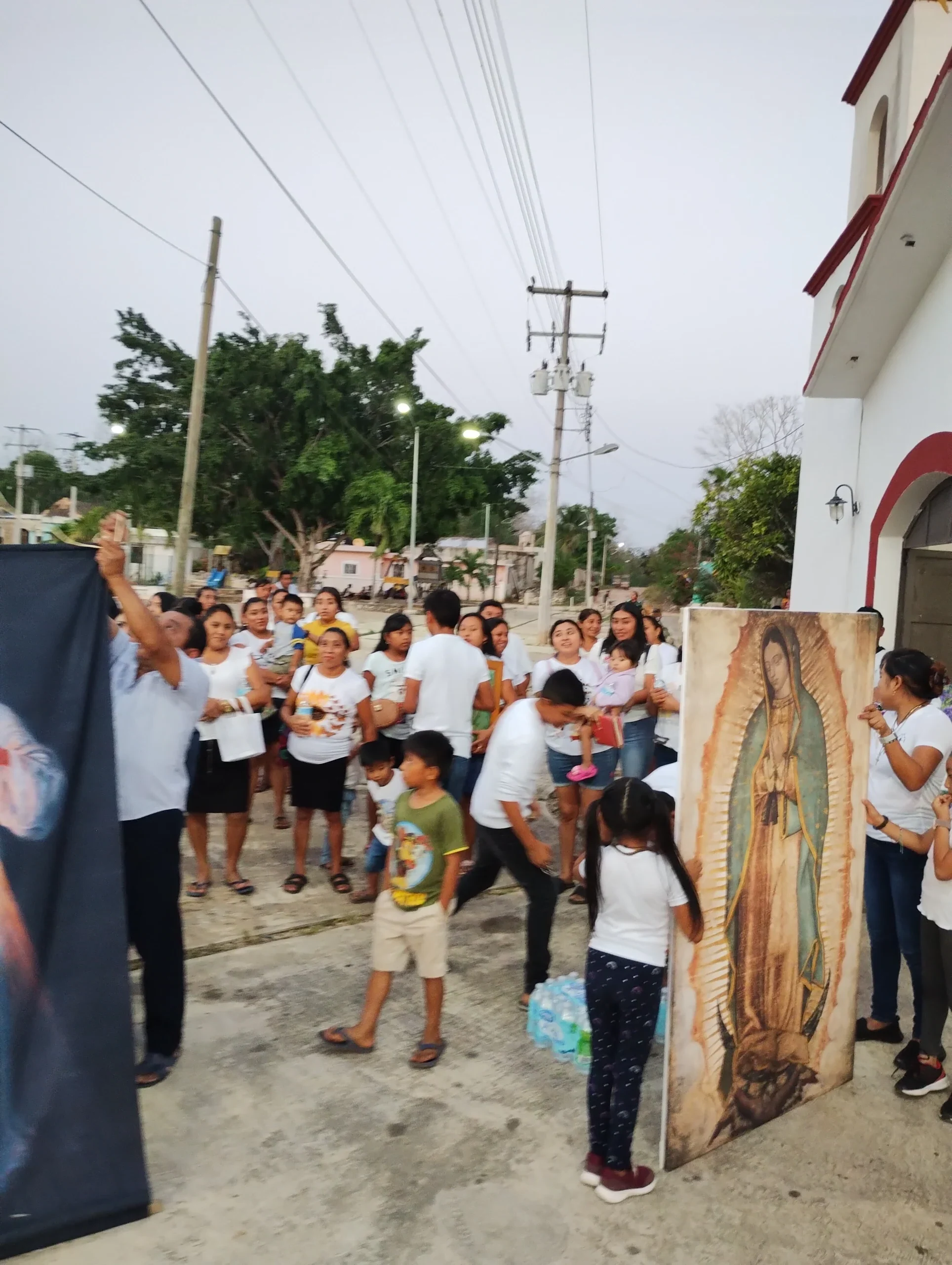 •En el lugar de reunión, se llevan algunas imágenes en bastidor de la Virgen de Guadalupe de tamaño original (1.70 x 1.05 m), además de invitar a las personas asistentes a que vayan de blanco y lleven una imagen de sus casas.