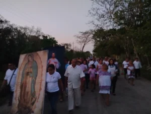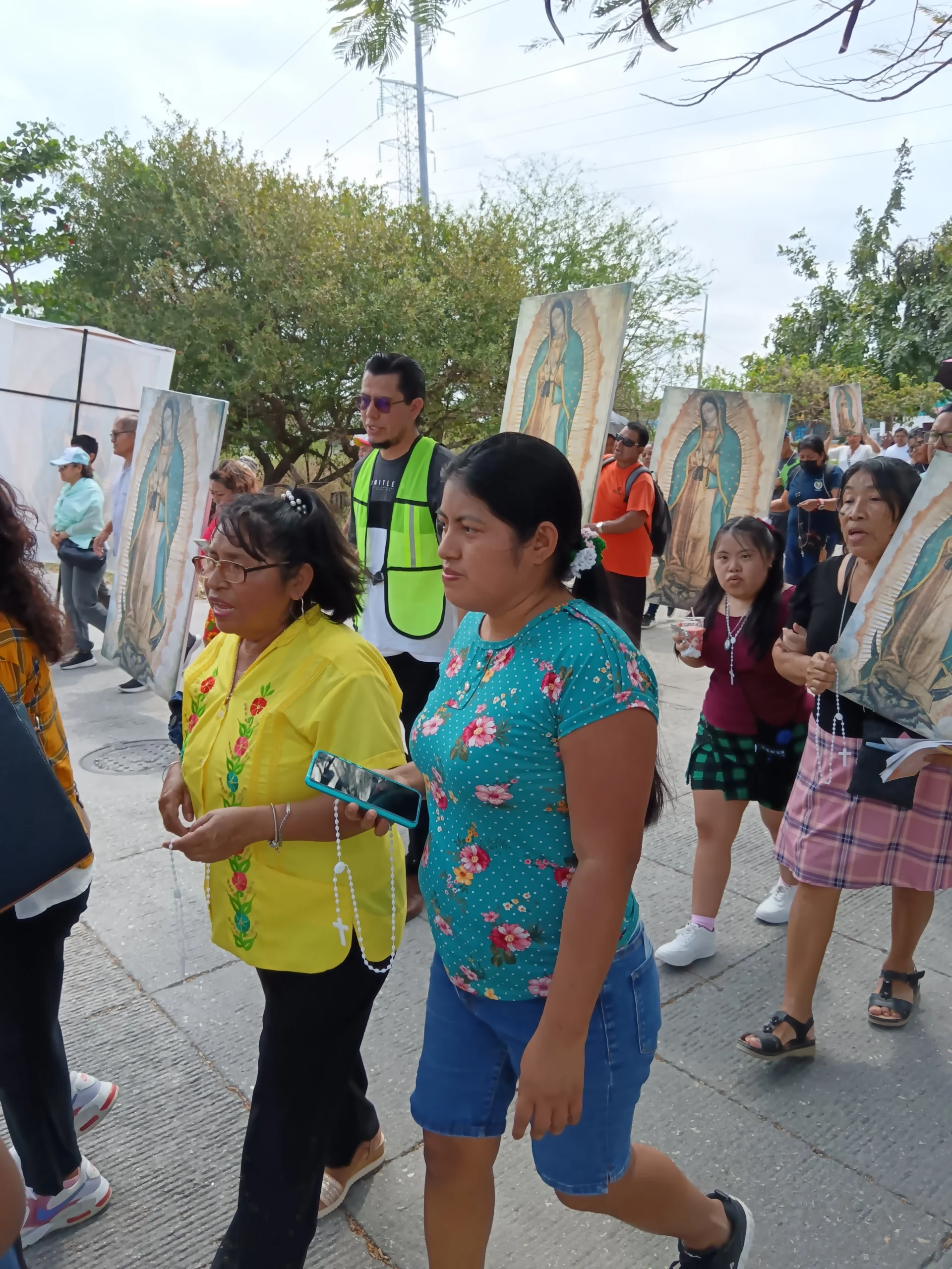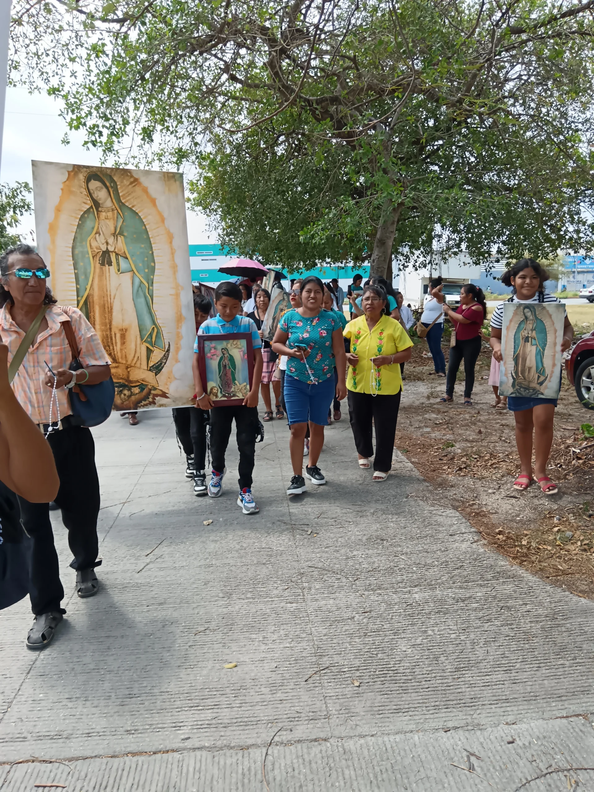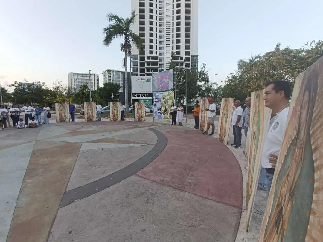 •En el lugar de reunión, se llevan algunas imágenes en bastidor de la Virgen de Guadalupe de tamaño original (1.70 x 1.05 m), además de invitar a las personas asistentes a que vayan de blanco y lleven una imagen de sus casas.