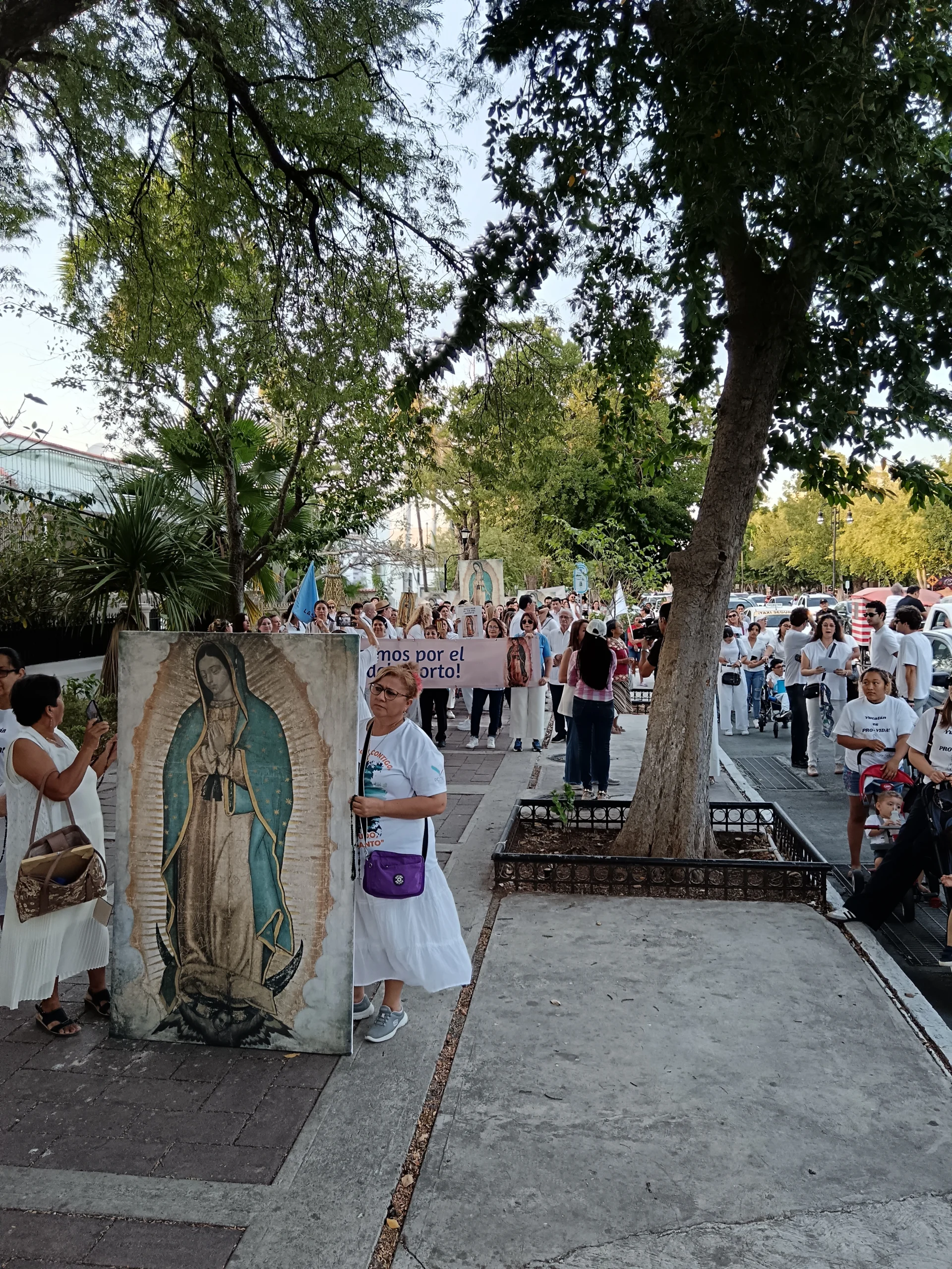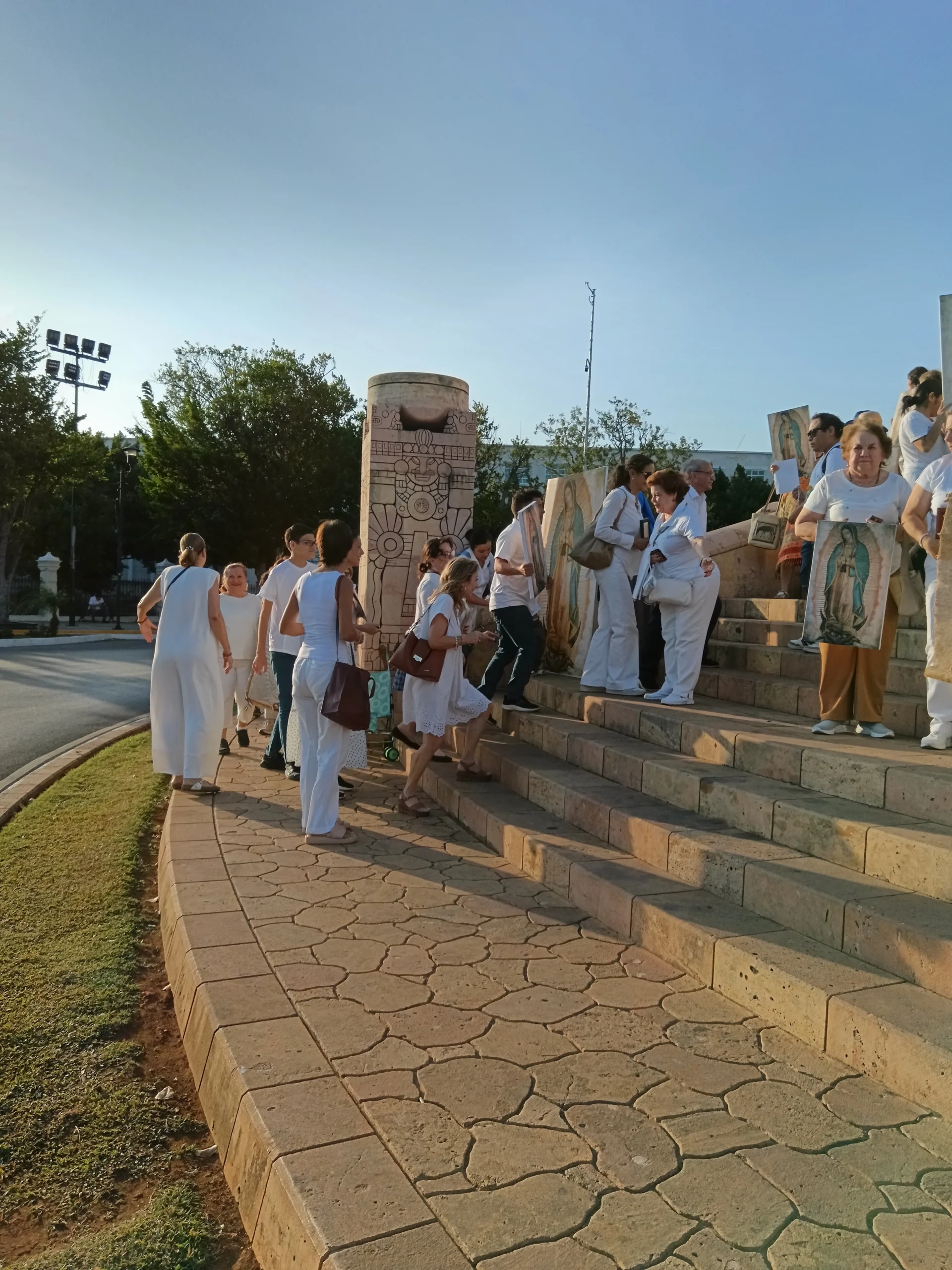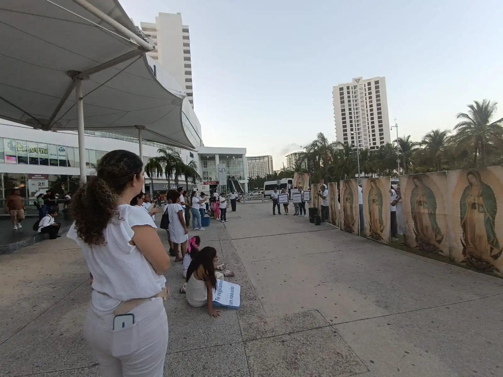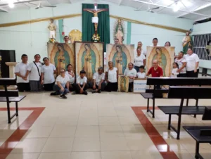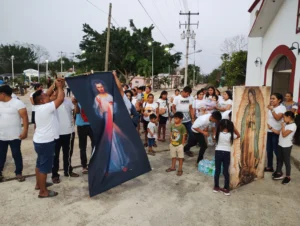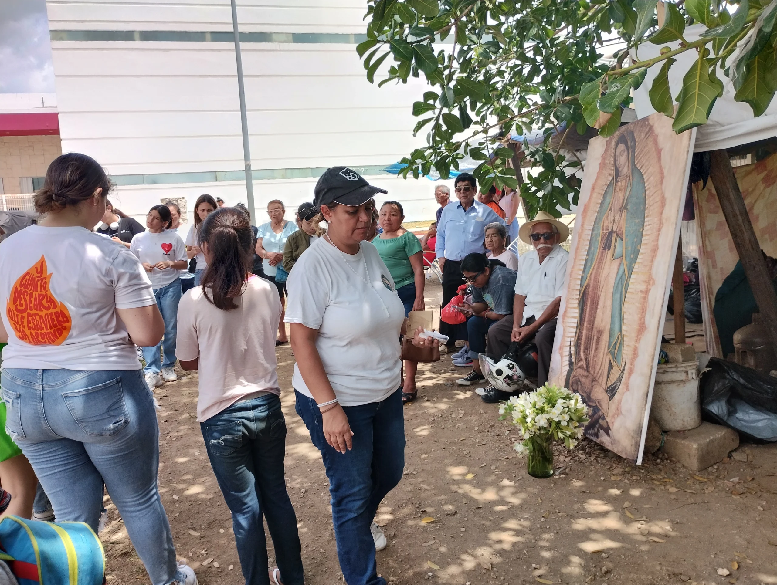 •En el lugar de reunión, se llevan algunas imágenes en bastidor de la Virgen de Guadalupe de tamaño original (1.70 x 1.05 m), además de invitar a las personas asistentes a que vayan de blanco y lleven una imagen de sus casas.