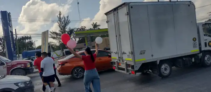 •Cada que se tenga el alto, salimos entre los autos con las imágenes y las cartulinas.