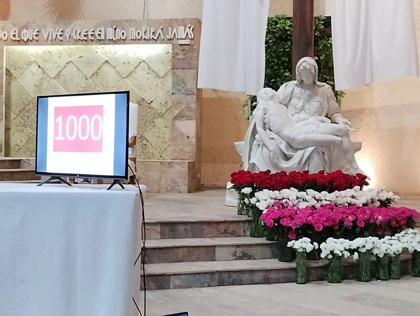 ▪ 1000 Ave Marías. 20 turnos cada 50 AM, una persona rezando cada turno, un Padre Nuestro iniciando cada turno, los 20 misterios (gozosos, dolorosos, gloriosos y luminosos) uno cada turno.